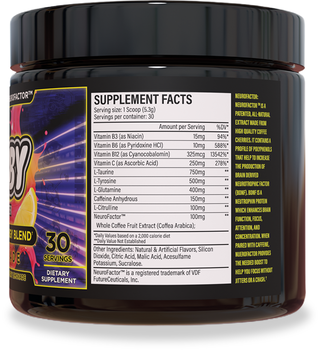 Whole Coffee Fruit Extract, formerly NeuroFactor®: A patented, all natural ingredient derived from the whole fruit of the Coffea arabica coffee plant. It enhances the production of a powerful protein in the brain called brain-derived neurotrophic factor (BDNF). In a clinical study, NeuroFactor increased BDNF by 143% *(source)